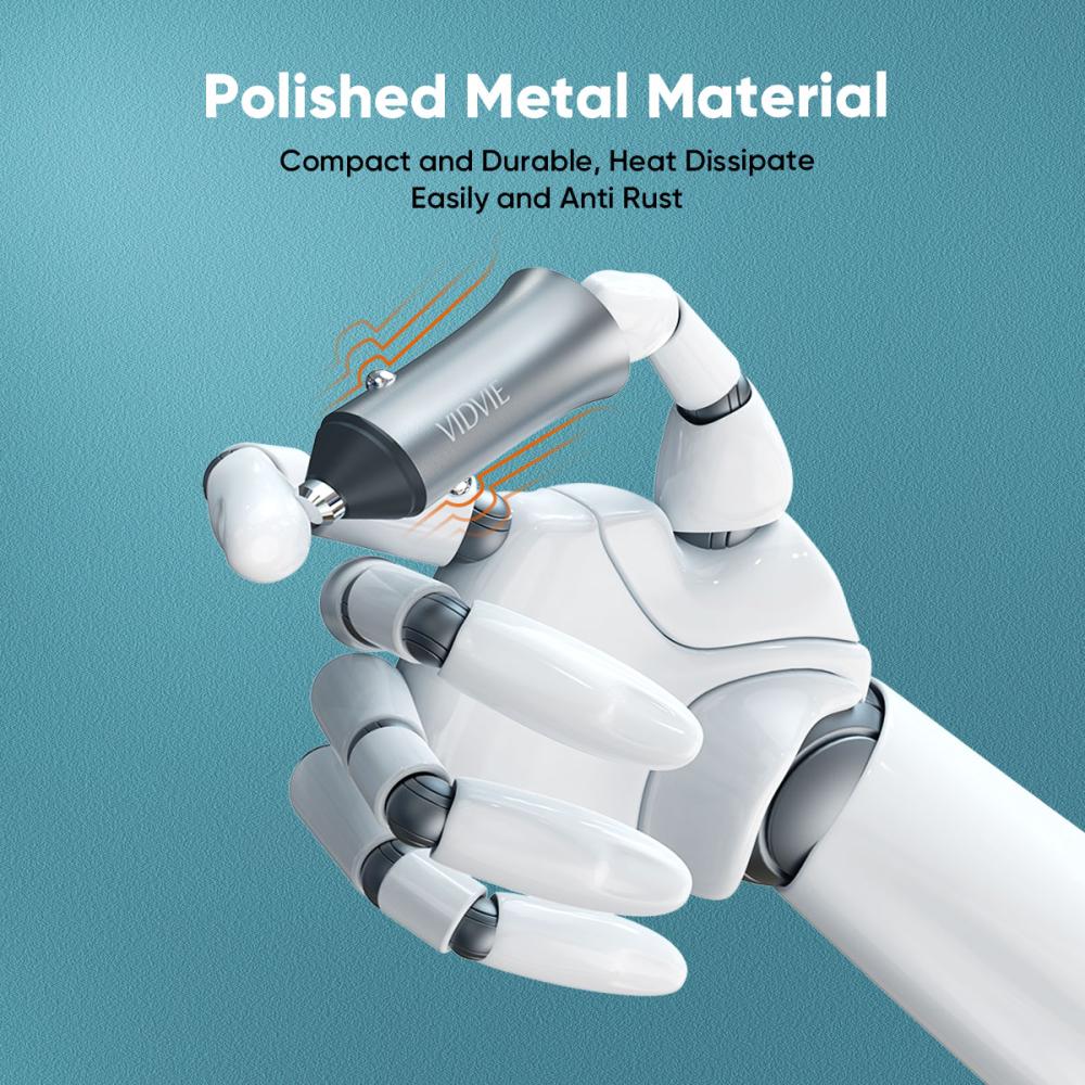 اشحن أجهزتك بسرعة وأمان أثناء القيادة مع شاحن السيارة الذكي من فيدفي. تصميم معدني أنيق، وأداء قوي مع دعم الشحن السريع بمنفذين USB-C وUSB-A لتلبية جميع احتياجاتك.