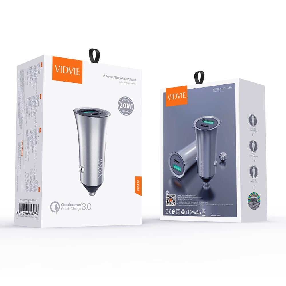 فيدفي شاحن سيارة سريع بمنفذين PD & QC – قدرة إجمالية 20 واط – موديل CC517C