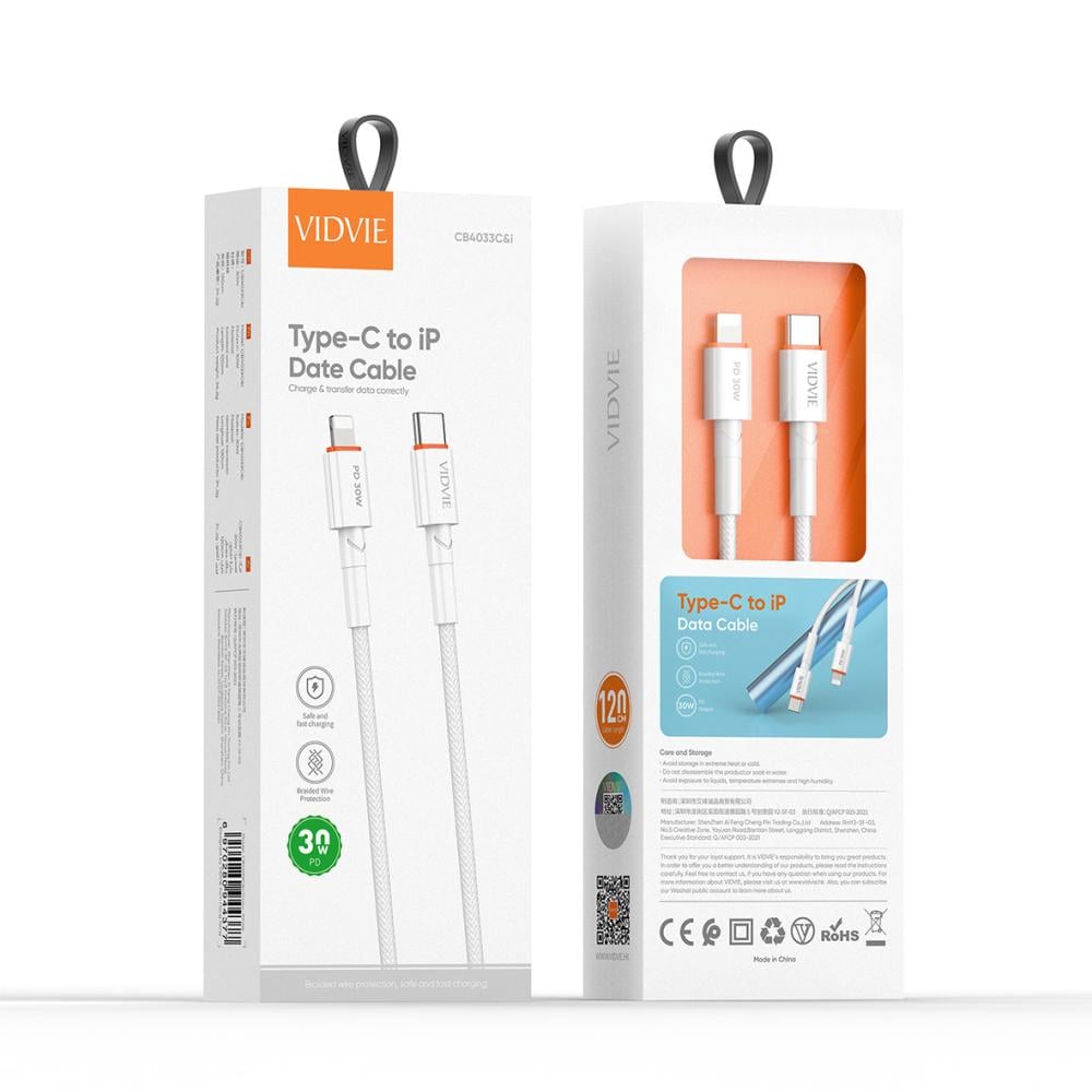Vidvie Type-C to Lightning Charging Cable – 30W – 1.2M – Nylon Braided