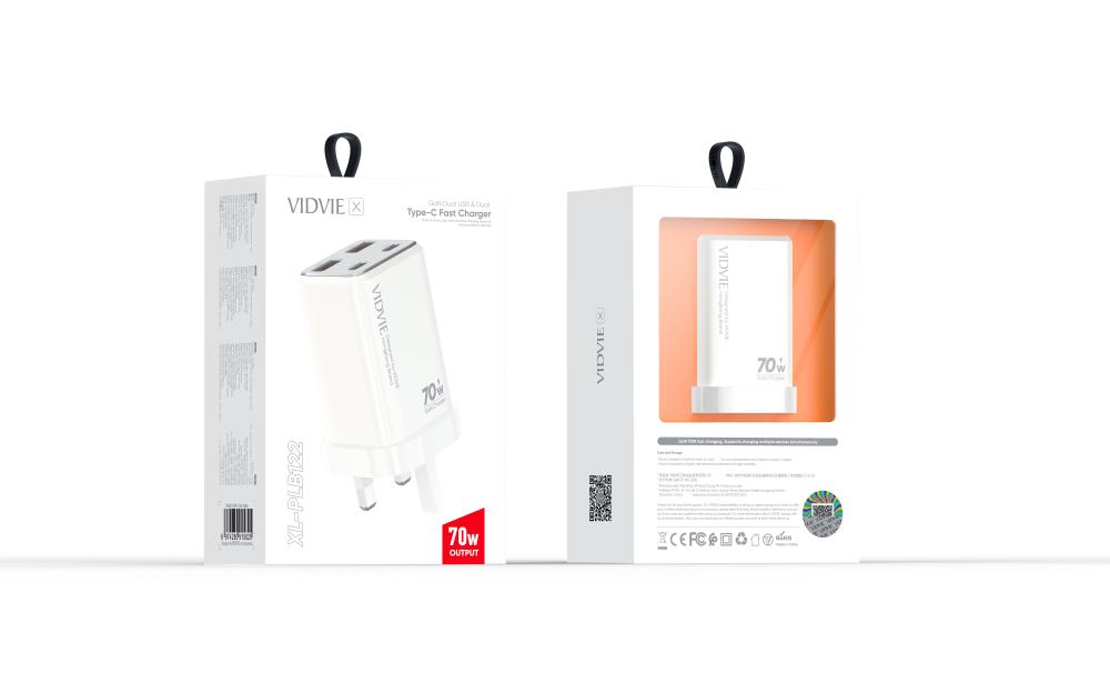 فيدفي شاحن جداري GaN Dual USB & Dual Type-C 70W Fast Charger XL-PLB122